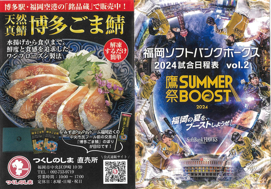 博多名物ごま鯖(ゴマサバ)をお届けしているつくしのしまとして広告掲載させていただきました。